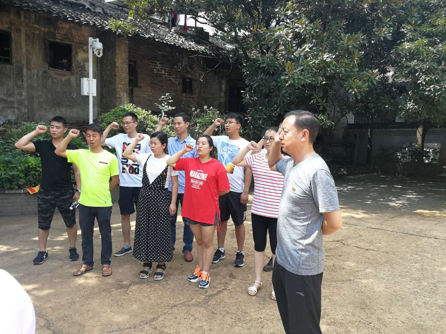 隨后,全體黨員在暴動指揮部舊址,面向黨旗重溫入黨誓詞,銘記入黨使命;黨支部書記為過“政治生日”的黨員送上生日賀卡和祝福。